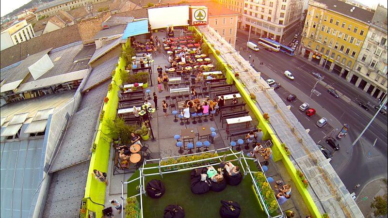 When it comes to partying on a rooftop, nothing beats Corvinteto. While this establishment is open all year, in the summer it comes to life, when the terrace opens. Set on top of an old social realist supermarket with sweeping views across the city, Corvinteto is certainly a unique space to drink in the open air, where you can watch the life in the city simply go by, watch a movie on one of their film nights or party until the sun rises.