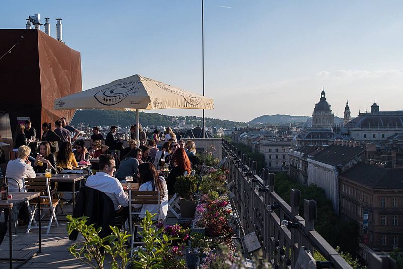Summer just teared in Budapest, skirts are getting shorter, streets are getting livelier day-by-day, and the outside places are blooming. Garden bars, terraces, tables on the streets are all great to sit down, but the most exciting of all are the rooftop bars, where besides the sunshine and fresh air, we can enjoy a stunning urban view. We show you our five favourite rooftop bars of Budapest.